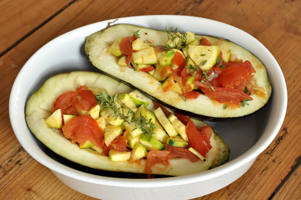 Aubergines violettes farcies aux légumes