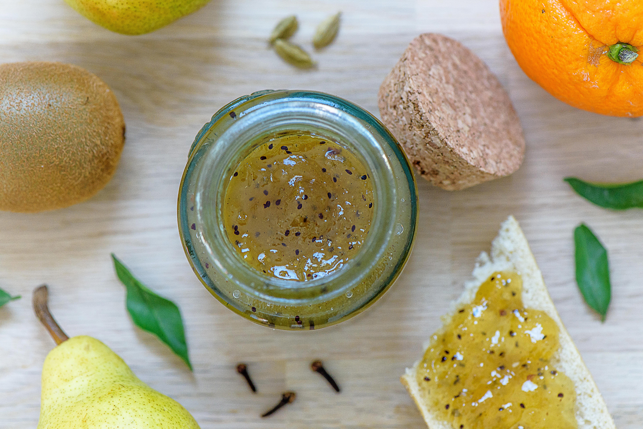 Confiture d'hiver à la poire, au kiwi et aux épices