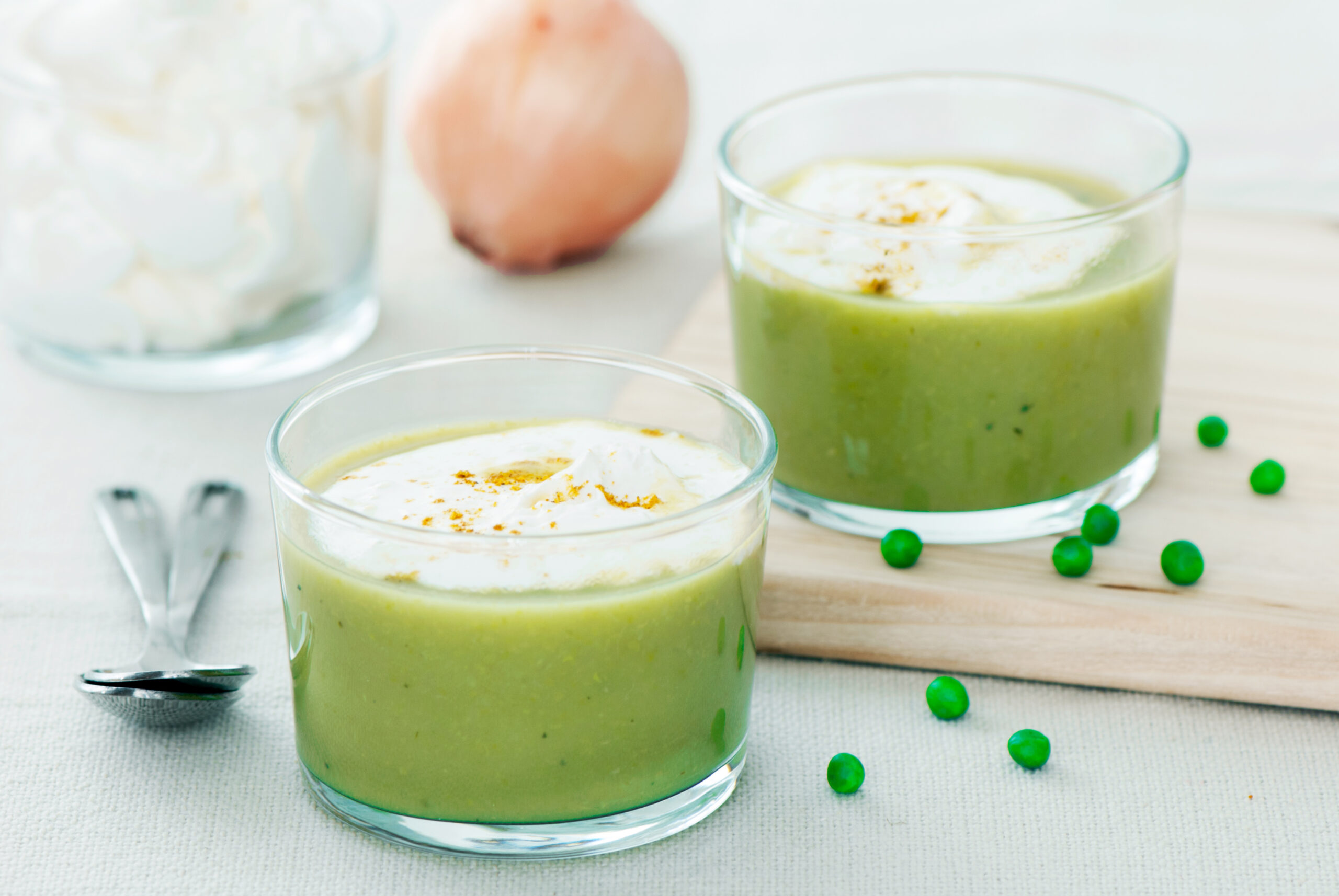 Crème de petits pois au curry