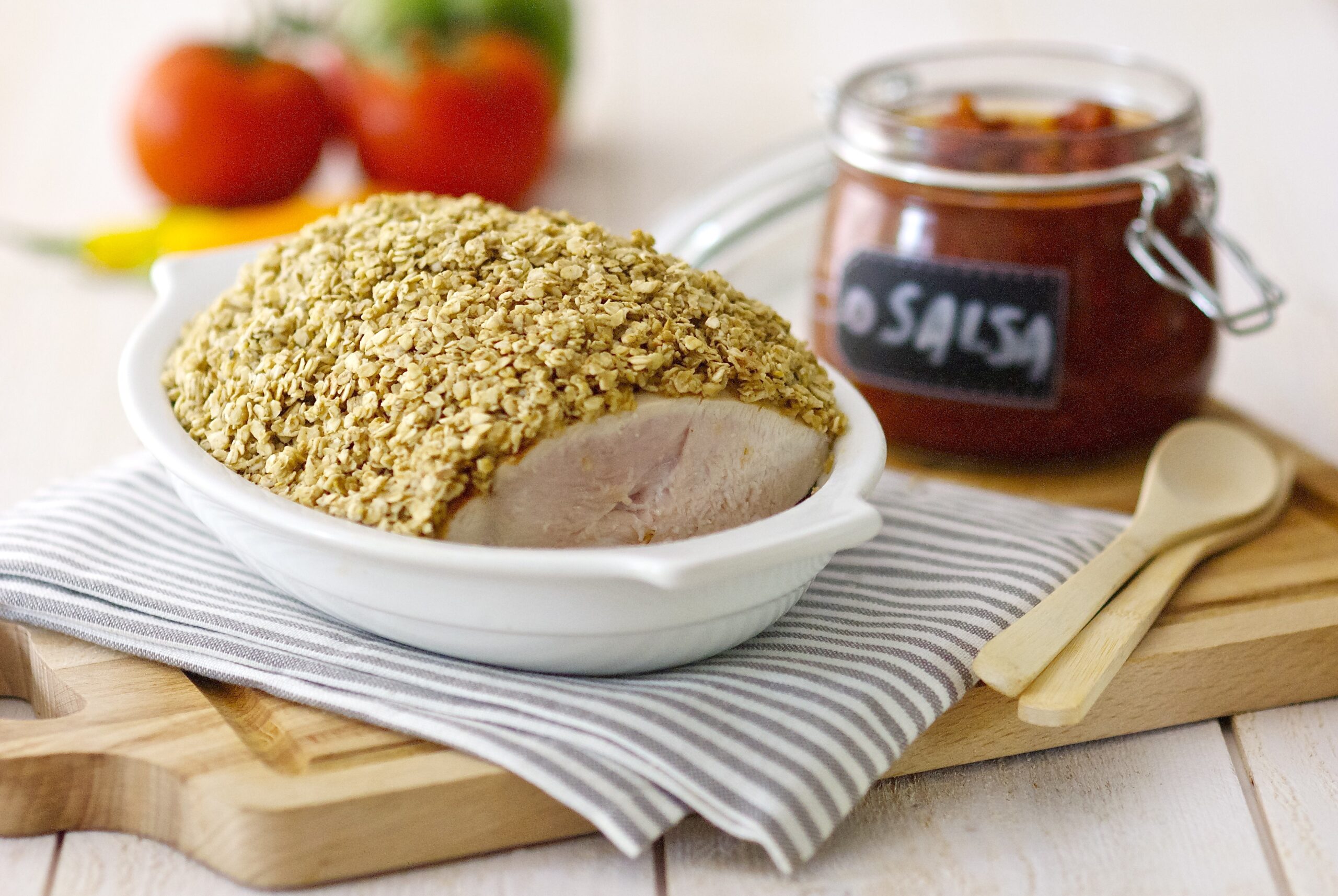 Filet de dinde en croûte d'avoine, sauce salsa