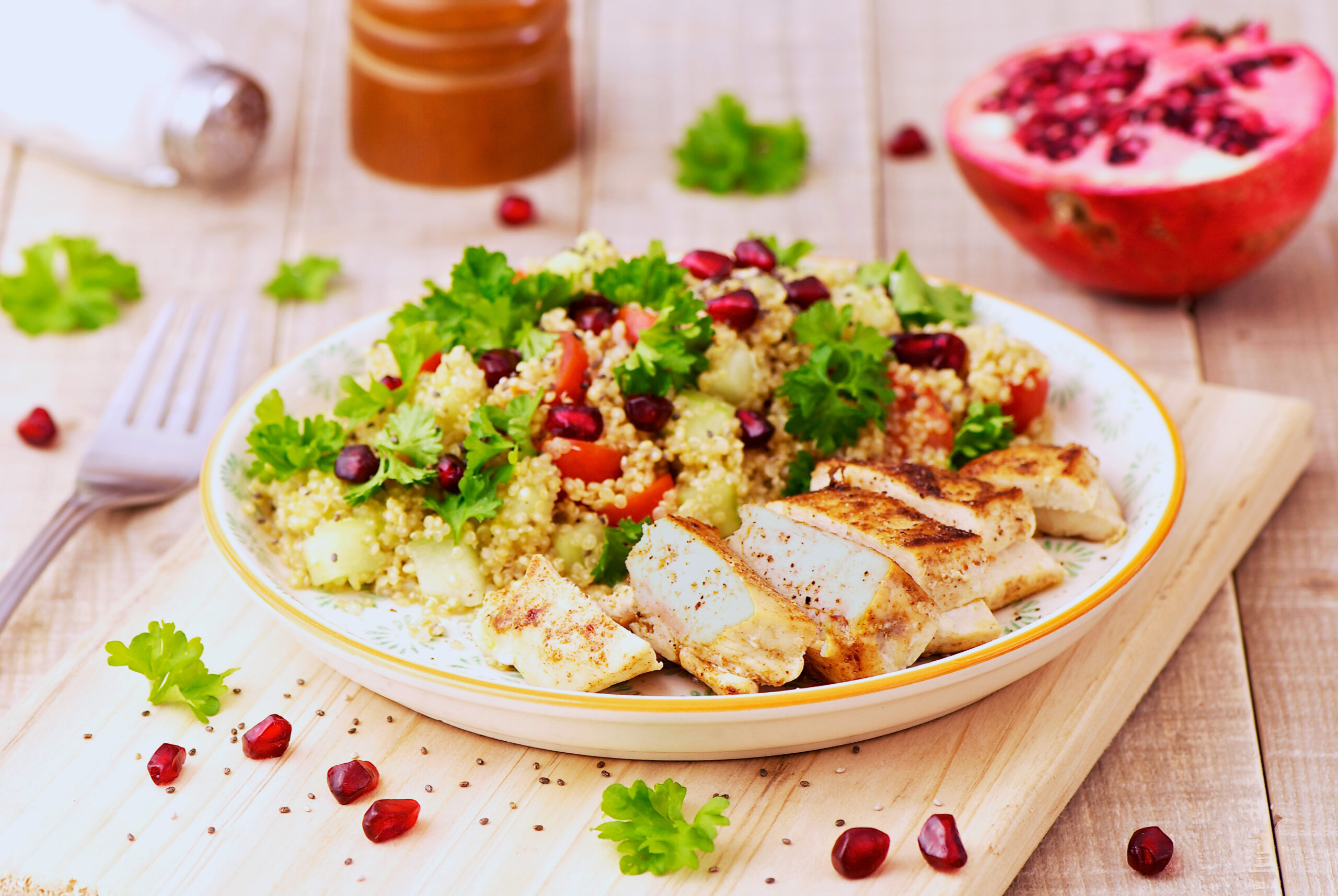 Filets de poulet épicés et taboulé de quinoa