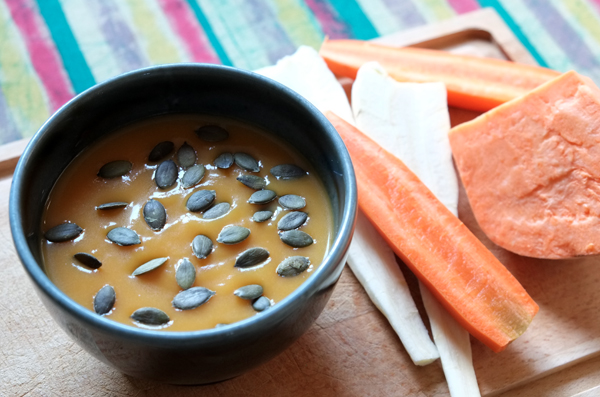 Soupe carotte-panais-patate douce-courge